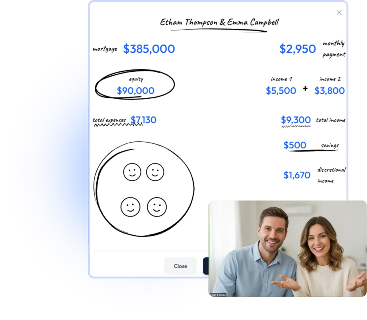 Input income, expenses, and household bills while you're on the call.