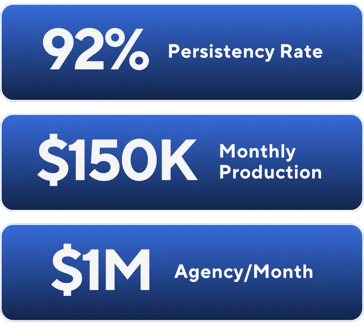 From $500K in debt to multiple 8-figure companies in insurance. From stuck at $38K/month to $150K/month in 7 months. From 65% persistency to 92%.